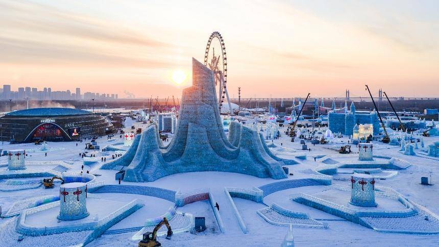 人民网哈尔滨12月16日电 (记者张哲鑫)第二十七届哈尔滨冰雪大世界将于12月17日上午10时开园。冰建施工以来,经过数以万计冰雪人的共同努力,园区景观建设快速推进,现已全面竣工,进入最后的场地整理阶段。一座全新的“冰雪童话王国”正翘首以盼,静待八方来客共赴冰雪之约。