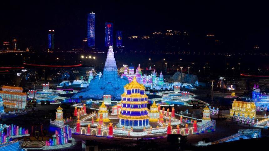 据了解,本届哈尔滨冰雪大世界运用冰雪语言,展示哈尔滨城市与国际文化。主塔“冰灯启梦”以雪花托举的“山”字为意象,巍然矗立;大国重器景观群充分彰显中国强大的科技实力;主宾省/市景观群以山东岱庙、福建土楼及深圳罗湖口岸建筑为原型,让多元建筑文化在冰雪中碰撞出不一样的火花;黄鹤楼景观将黄鹤楼的雄浑与雅致完美融入到北国冰雪艺术中。